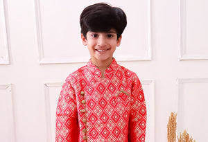 Elaisha Fullsleeves Embellished kurta with Dhoti - Red & Orange